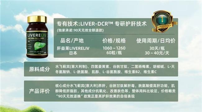 其优势是运用了Liver-DCRE™&iSynergies™两种科研工序,是针对肝部问题诞生的,同时使用意大利产水飞蓟宾,浓度达到98.6%,能直接在受损的部位进行修护,避免进行二次伤害。